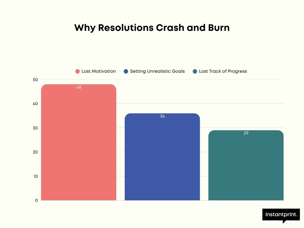 It’s not a lack of willpower that derails most resolutions – it’s a lack of structure. instantprint’s survey of 2,000 UK adults reveals that 48% of people quit their resolutions because they “lost motivation”, while 36% blamed setting unrealistic goals. Another 29% admitted they simply lost track of their progress.